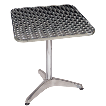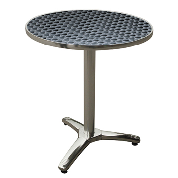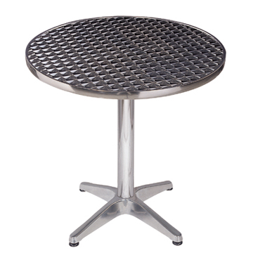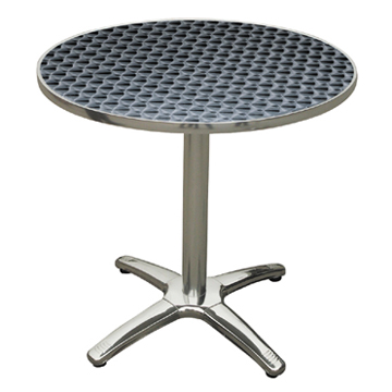 Aluminum tables use aluminum alloy as the frame and stainless steel as the top, concerning the edge of these aluminum dining tables, there are two ways to finish them, one with aluminum and the other is stainless steel edge, it’s more popular for the aluminum tables with stainless steel edge because it can well water proofed. The common sizes are D600, 700, 800 and 900, also rectangle shape, you can choose whatever size as you like. These aluminum dining tables most used as outdoor furniture, patio furniture, etc.