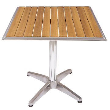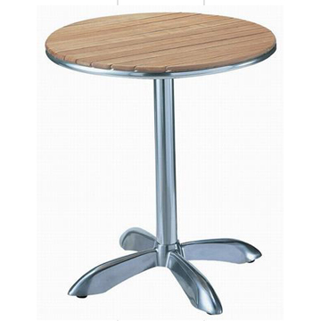 Aluminum wooden tables use aluminum alloy as the frame and wood top, you can choose the wood what you would like, teak or willow or any other wood. Concerning the table top of the aluminum tables, there are several different kinds of pattern for the wood to combine into the table top, for details you need to check them for more information, also you are welcome to offer your own design we can do the OEM produce.