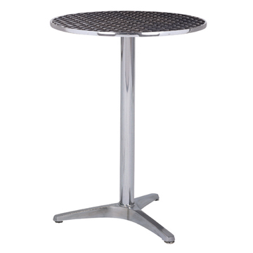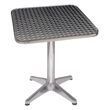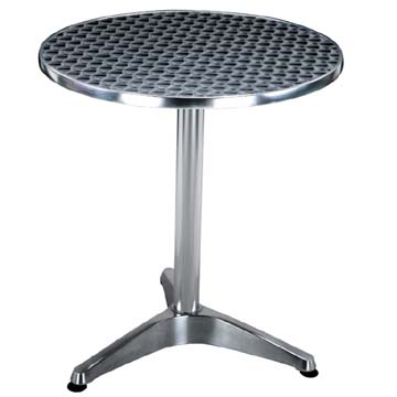 Aluminum tables use aluminum alloy as the frame and stainless steel as the top, concerning the edge of these aluminum dining tables, there are two ways to finish them, one with aluminum and the other is stainless steel edge, it’s more popular for the aluminum tables with stainless steel edge because it can well water proofed. The common sizes are D600, 700, 800 and 900, also rectangle shape, you can choose whatever size as you like. These aluminum dining tables most used as outdoor furniture, patio furniture, etc.