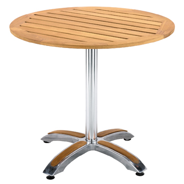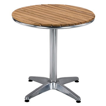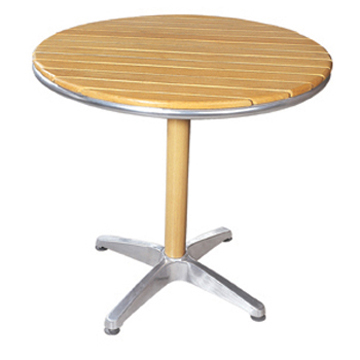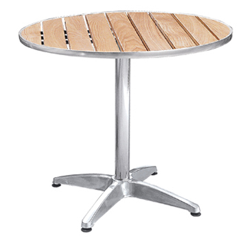 Aluminum wooden tables use aluminum alloy as the frame and wood top, you can choose the wood what you would like, teak or willow or any other wood. Concerning the table top of the aluminum tables, there are several different kinds of pattern for the wood to combine into the table top, for details you need to check them for more information, also you are welcome to offer your own design we can do the OEM produce.